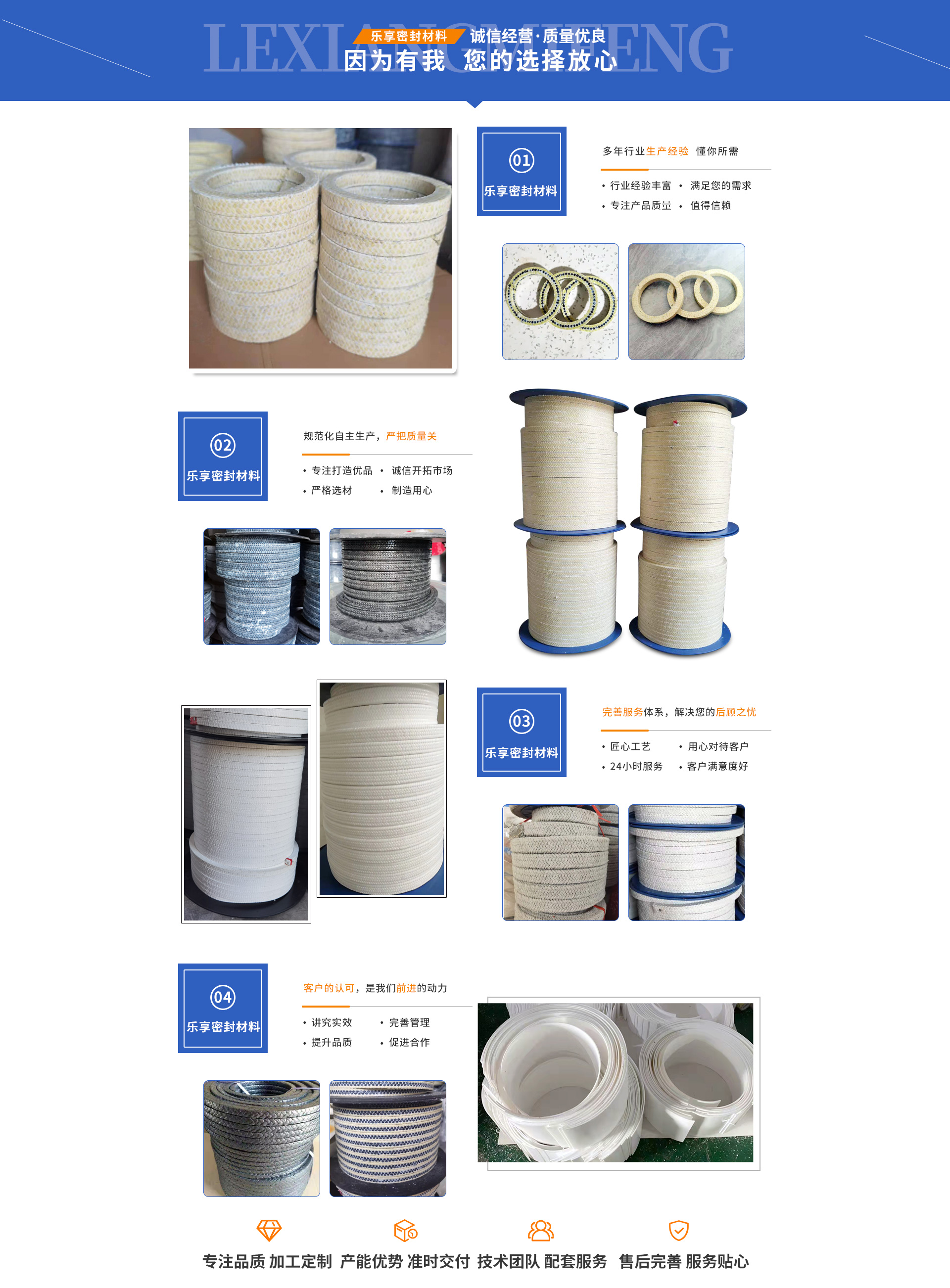 芳綸盤根,四氟盤根,碳素盤根,石棉盤根,芳綸墊片,石棉浸液盤根-大城縣樂享密封材料有限公司